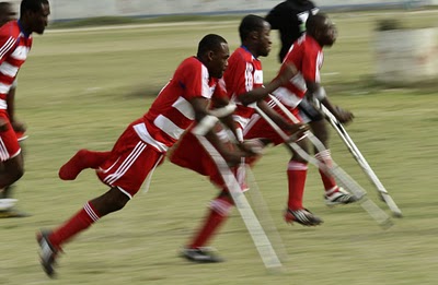 Ini bermakna mereka bermain dengan sebelah kaki sahaja dan dengan bantuan tongkat. Di Haiti pada 12 Januari yang lalu berlangsung satu perlawanan pertunjukan di antara 2 kumpulan yang hanya berkaki sebelah.